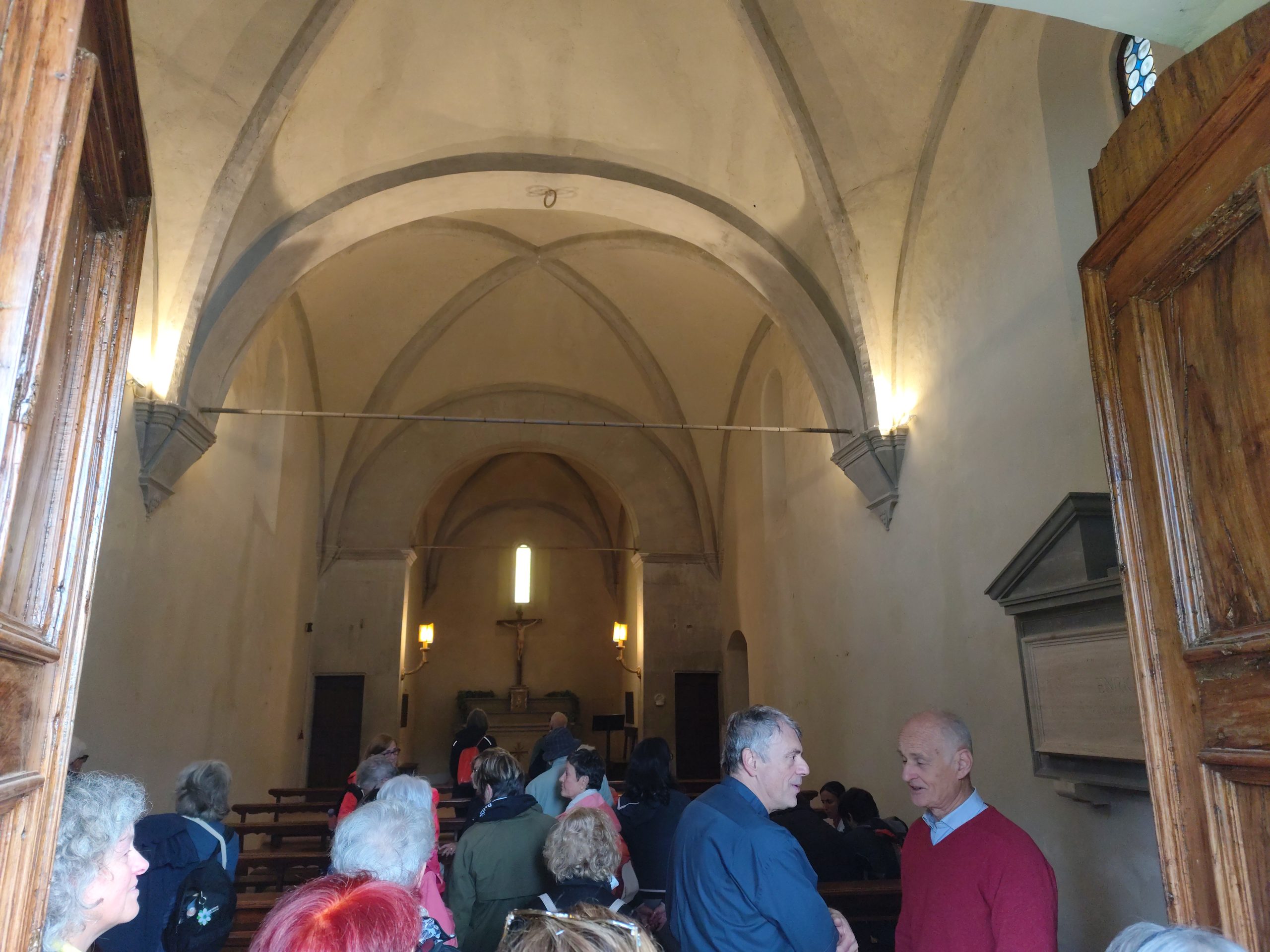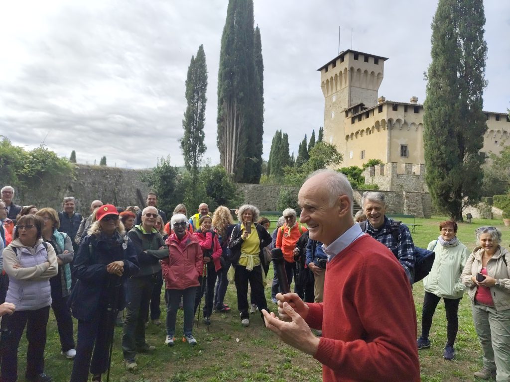 Al Trebbio il gruppo è stato accolto direttamente dal marchese Clemente Corsini, il quale ha raccontato del restauro della chiesa del Trebbio avvenuta circa 10 anni fa, che ha mantenuto le caratteristiche originali. La Chiesa risale al 1420/1430 il cui progetto è certo essere dell’architetto Michelozzo. La struttura semplice e con volte in pietra è stata una chiesa molto importante, tanto che ospitava la pala del Trebbio di Botticelli portata a Firenze all’epoca delle confische napoleoniche.