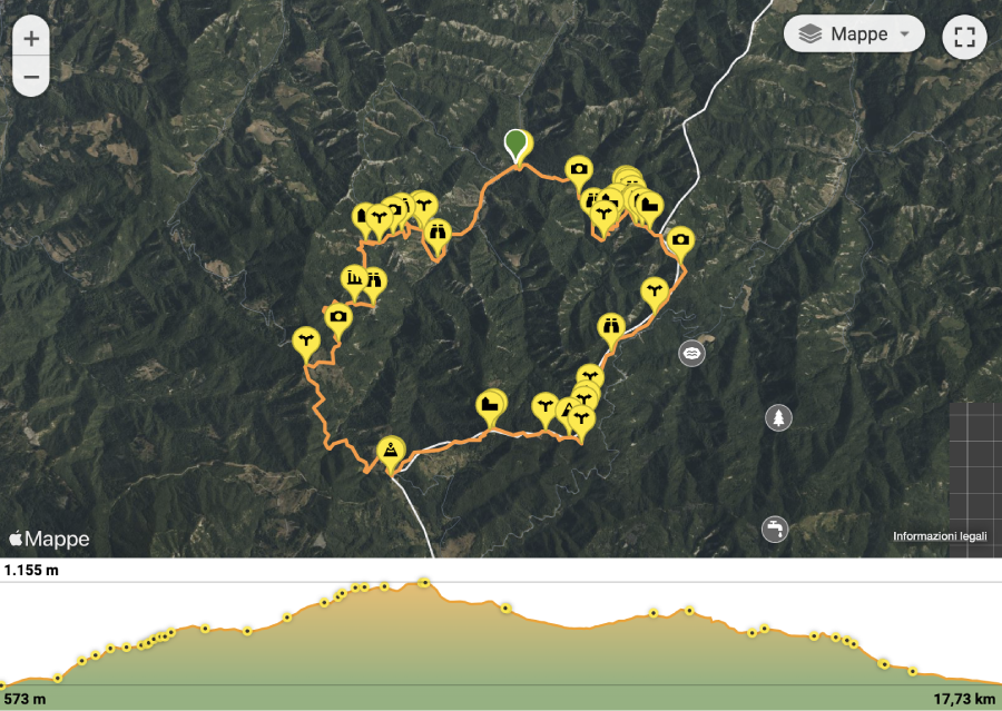 In generale si tratta di un percorso eccellente, con sentieri battuti anche se non sempre agevoli, sufficientemente segnalati (non mancano le incertezze però). Che tocca due eremi medievali perfettamente restaurati, una quercia secolare, grandi boschi e castagneti, panorami mozzafiato, qualche salita bella pesante. Un gran giro, non comodo però!