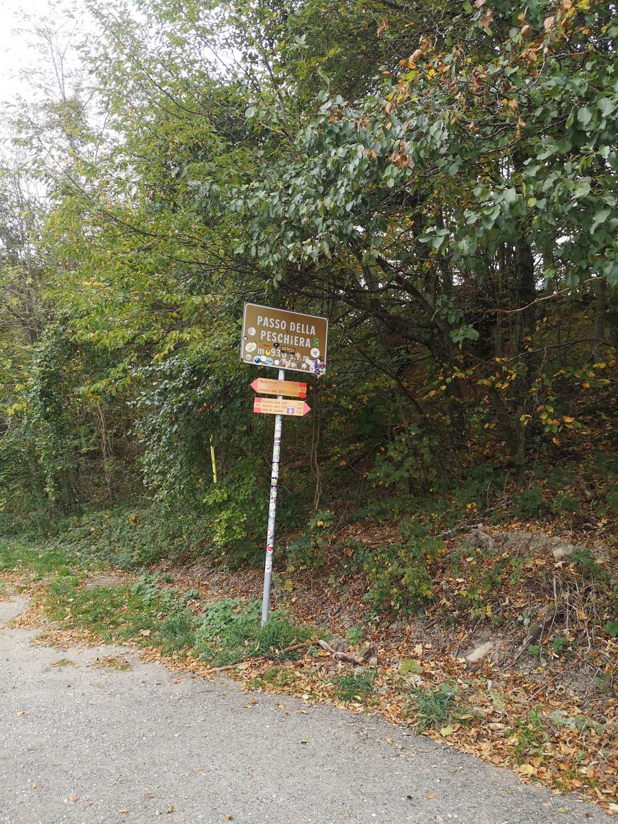 Il Cozzo merita tutto il nome che ha: uno strapiombo perfetto. Siamo quindi entrati nel sentiero 555 (Monte Val dei Porri – Sella Lavane) quasi senza accorgercene. Dopo questa fatica, non si smette però mai veramente di salire, poco o tanto, per altri 5 km. Poi si si scende fino al Passo della Peschiera.