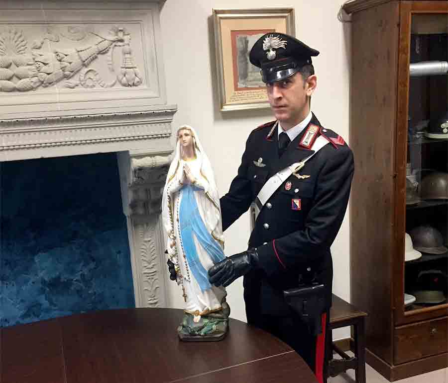 La statua in gesso, alta 80 cm., è stata recuperata dai militari dopo l’ispezione nell’abitazione di un quarantenne del luogo, già noto alle forze dell’ordine.