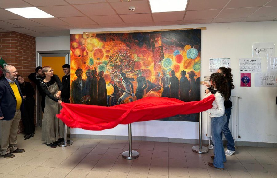 BORGO SAN LORENZO – Questa mattina, lunedì 2 Dicembre, è stato presentato a Borgo San Lorenzo il gemellaggio tra il Liceo artistico Alberti Dante di Firenze e l’IIS Chino Chini di Borgo San Lorenzo con la volontà di unire i concetti di artigianato e di arte, nel nome di Galileo Chini. Con la riproposizione del suo quadro “Festa dell’ultimo dell’anno a Bangkok”, realizzata dagli studenti della 5E del Liceo artistico Alberti Dante di Firenze e collocato nell’istituto Chino Chini per i 150 anni dell’artista, si sancisce l’unione tra le due scuole toscane: un liceo artistico e un Istituto tecnico e professionale, creando un sodalizio ideale fra artigianato e arte, in nome di Galileo Chini, coinvolgendo tutti gli indirizzi dell’Istituto Chino Chini e le classi 4AA, 5AA, 5ATT, 5BTT, 4ACG; 5ACG, 5ASB, 5AMI, 2AR, 5ACU. Sono state esposte anche alcune opere di artigianato artistico intitolate ArtElettrica realizzate dai ragazzi del professionale in occasione della mostra “L’altro volto della meccanica va a scuola” e una mostra fotografica di opere della manifattura Chini del fotografo Francesco Noferini.