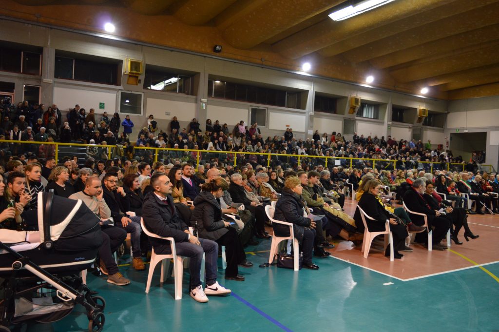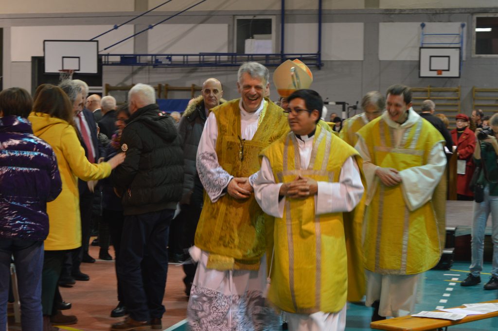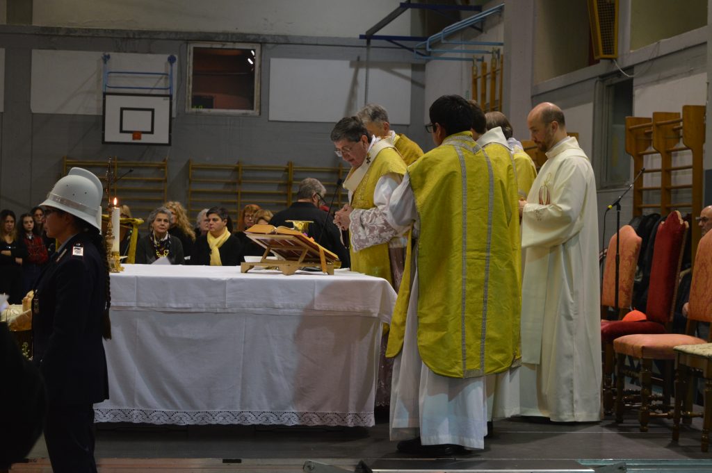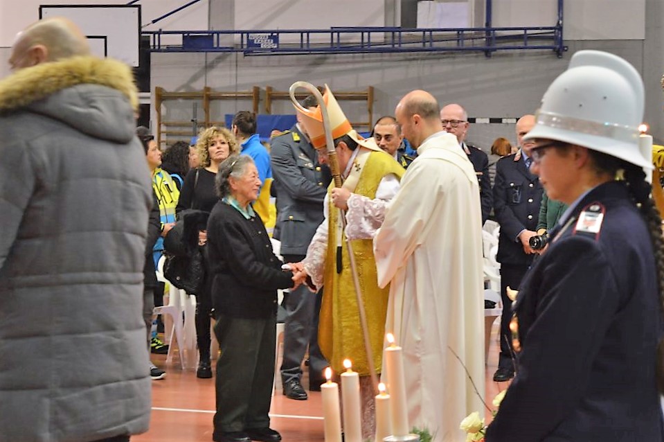 Erano davvero in tanti nella grande palestra della scuola media, per una celebrazione del Natale molto sentita e commovente, e don Stefano -dopo aver ricordato la vicinanza dell’Arcivescovo, uno dei primi a telefonargli la mattina dopo la scossa- ha scherzato su questo gran numero di persone, dicendo che avrebbe chiesto al Cardinale di venire più spesso. Tutti riuniti in quella palestra che per giorni è stata il luogo dell’accoglienza dopo la grande paura, e che ha ospitato centinaia di Barberinesi senza casa. E che nella notte di Natale è diventata “cattedrale”. Per la prima volta, lo ha ricordato lo stesso Arcivescovo, egli non ha celebrato la Messa di Natale in Santa Maria del Fiore a Firenze. Peraltro una Messa particolare, che ricorda quella celebrata dal Papa Paolo VI, quando venne a Firenze dopo l’alluvione del 1966.