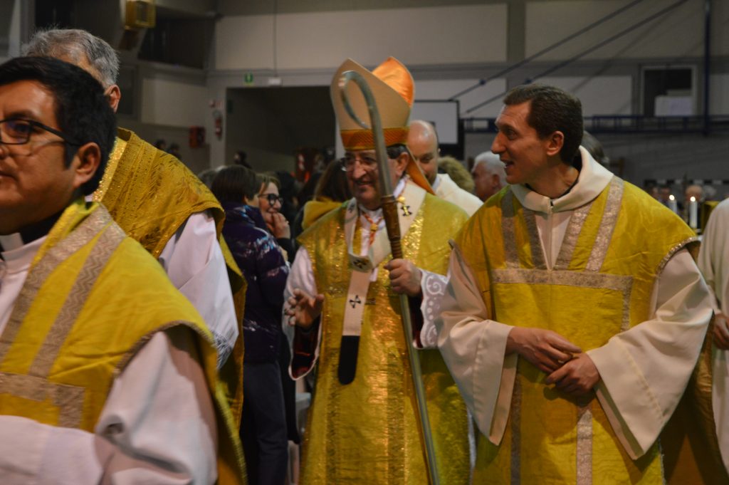 E Betori ha parlato di una propria esperienza personale: “Di questa parola di speranza abbiamo particolare bisogno in questa terra del Mugello, segnata dal terremoto. Il timore segna ancora i nostri cuori, e questo è naturale, ma non dobbiamo lasciarci vincere dalla paura. Lasciate che ve lo dica un vescovo che viene dall’Umbria, terra anch’essa di terremoti, che non può dimenticare come la casa sua e dei suoi fratelli dovette essere rasa al suolo dopo il terremoto del 1997, per essere poi ricostruita. Oltre a volervi manifestare un segno di affetto, è anche questa esperienza che mi ha fatto decidere a condividere con voi la Messa della Notte di Natale. Non posso infatti dimenticare come per ben due anni, essendo inagibile la cattedrale di Foligno, ho celebrato ogni domenica prima sotto un tendone e poi in un prefabbricato. Un disagio e una precarietà che ci faceva sentire però più vicini al Signore, il quale nel Vangelo dice di sé: ‘Il Figlio dell’uomo non ha dove posare il capo’. Sono accanto a don Stefano e a Don Nicola e assicuro a loro e a voi che faremo quanto possibile per farvi tornare nei tempi tecnici più stretti nella vostra chiesa parrocchiale. La vicinanza e l’impegno si estendono agli altri sacerdoti e alle altre comunità che hanno al momento le chiese serrate per inagibilità. Penso soprattutto a Sant’Agata, ma anche alla comunità rumena ortodossa che si riuniva a Petrona”.