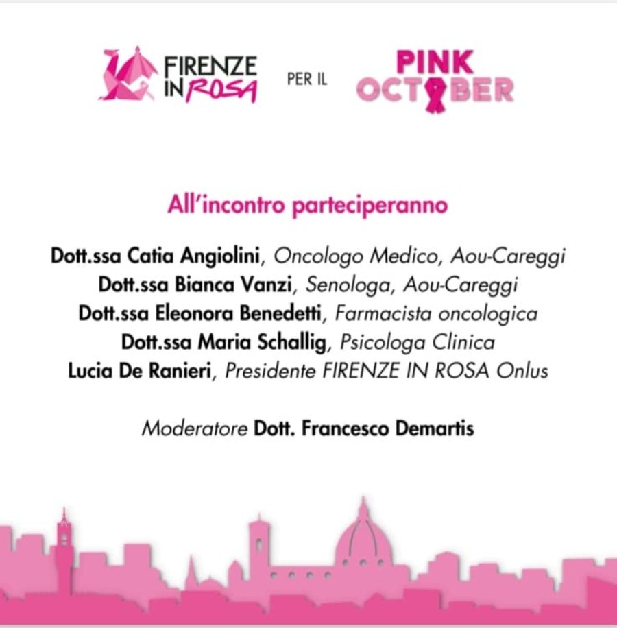 La mattina dalle 8.30 alle 12.30 agli studi medici di Pratolino sarà presente il Punto Rosa, dove si potranno fare screening gratuiti e ricevere informazioni. Per info e prenotazioni chiamare il numero 3888049901 nelle fasce orarie 9.30-12.30 e dalle 15.00-17.00.