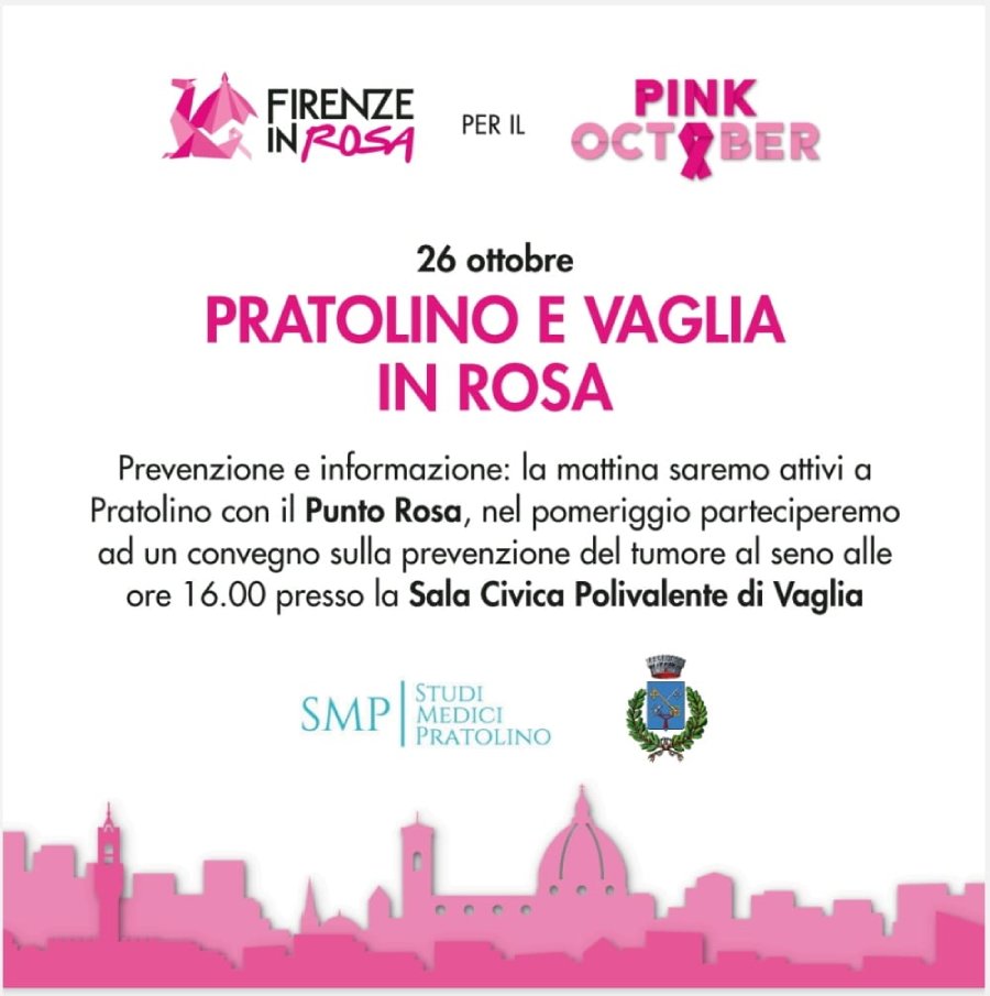 VAGLIA – Domani, sabato 26 Ottobre, Vaglia e Pratolino si tingeranno di rosa per promuovere la cultura della prevenzione del tumore al seno, con una giornata di screening gratuiti, un convegno e l’illuminazione simbolica del palazzo comunale.