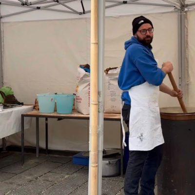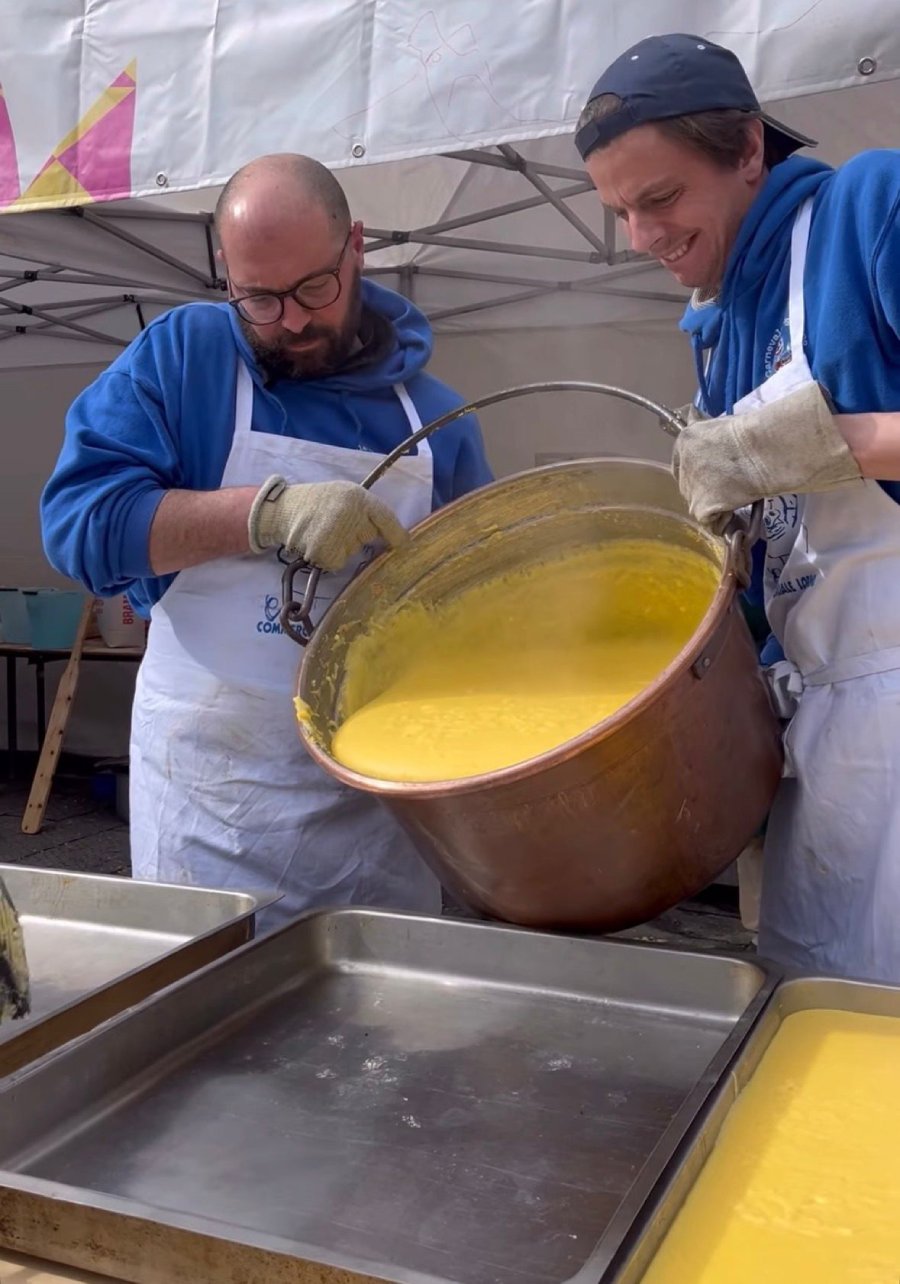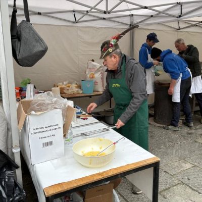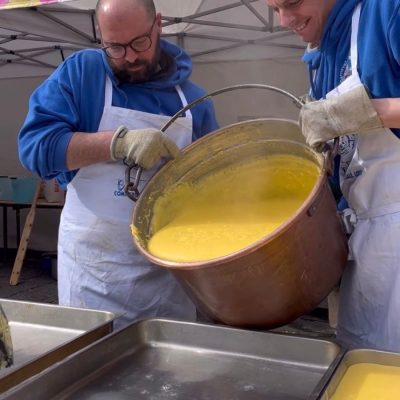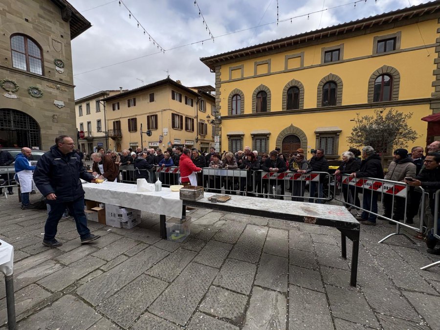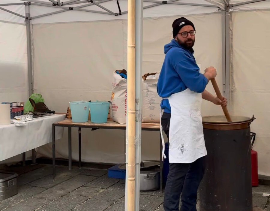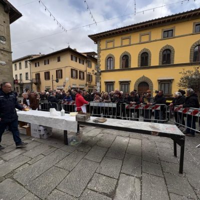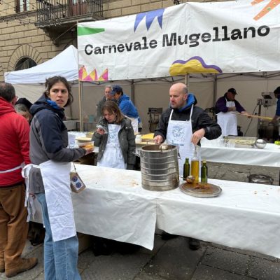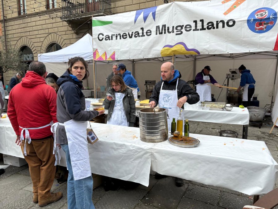 Tra il personale impegnato nella preparazione c’era Matteo Ubaldi, presidente del Carnevale mugellano, che ha spiegato che poco dopo le 11.00 si era già a 80 chili di polenta preparata, stimando di arrrivare ai 110-120 chili nel corso della mattinata, come già avvenuto gli anni scorsi. E sono d’obbligo, naturalmente, i ringraziamenti ai tanti volontari.